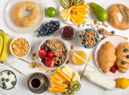 mléko a mléčné výrobky, maso, drůbež, vejce, ryby, obilné výrobky, zdravé tuky, ovoce a zeleninu.